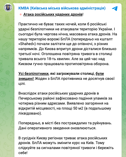 8.01 У ніч проти 7 вересня Київ атакували безпілотники.