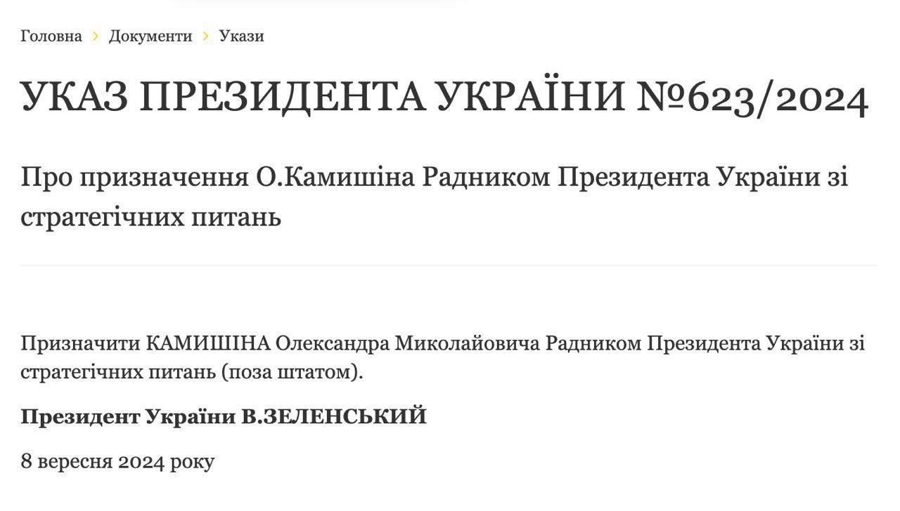 А колишнього міністра стратегпрому Олександра Камишина призначено позаштатним радником зі стратегічних питань.