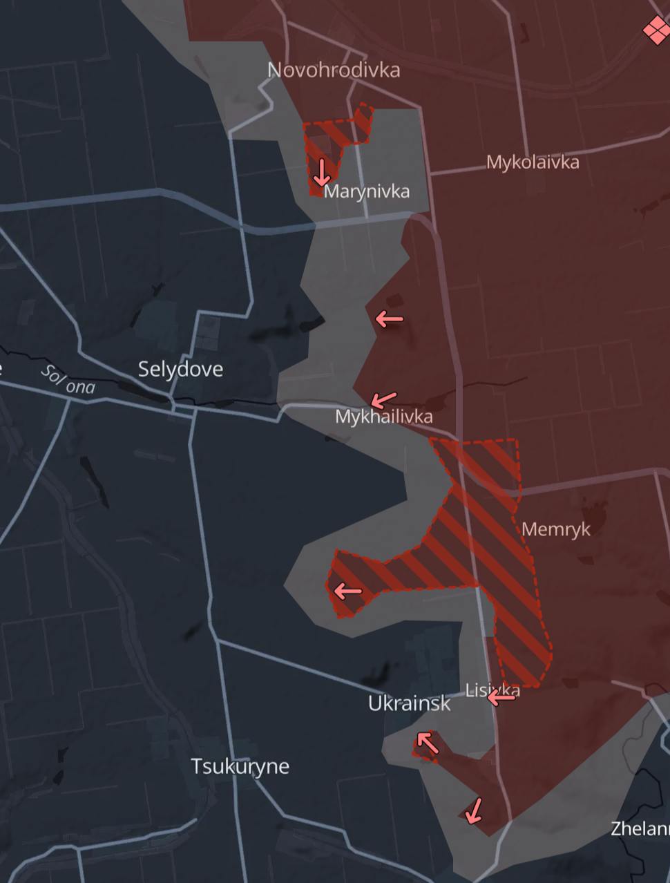 Також росіяни просунулися в самому Українці та в селі Маринівка на північ від Селідово, повідомляє український військовий паблік Deep State.
