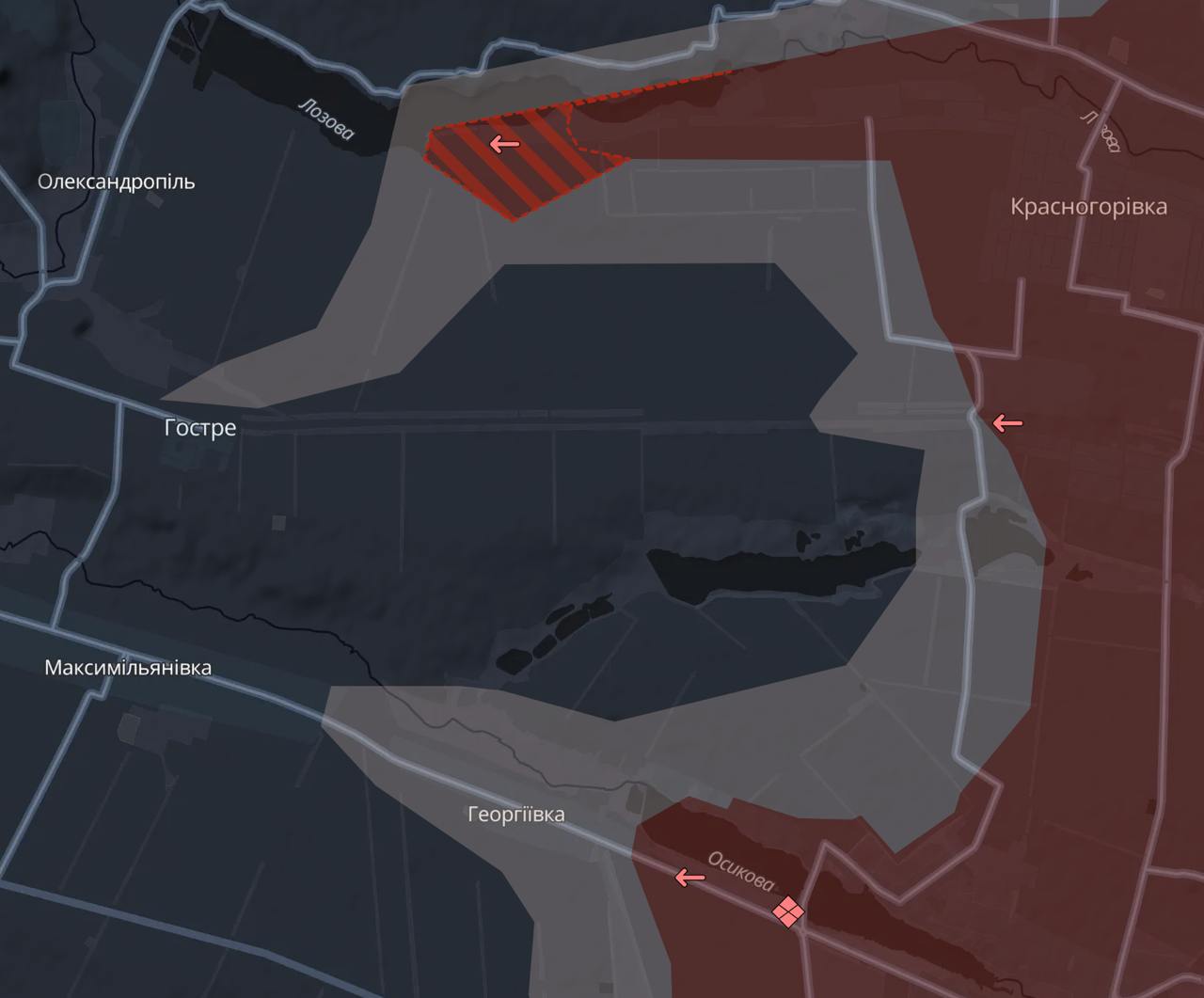 Про це пише ресурс Deep State, підтверджуючи вчорашні заяви українських військових. Атака на Гостре ставить під загрозу укріпрайон ЗСУ у Георгіївці та Максиміліанівці, що прикривають зі сходу Курахове.