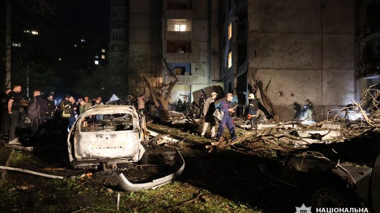 Кадри з місця прильоту біля багатоповерхівки в Харкові.