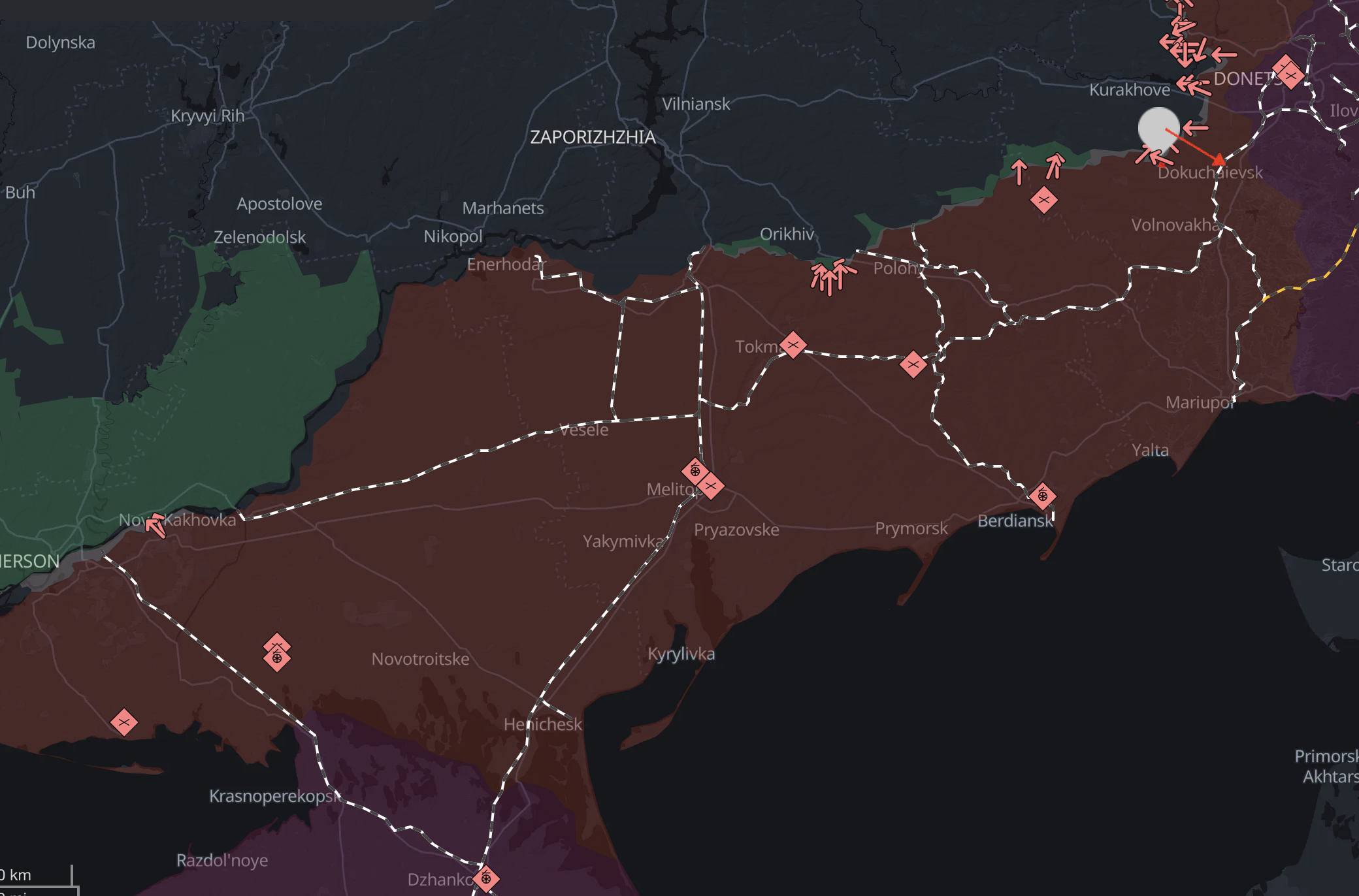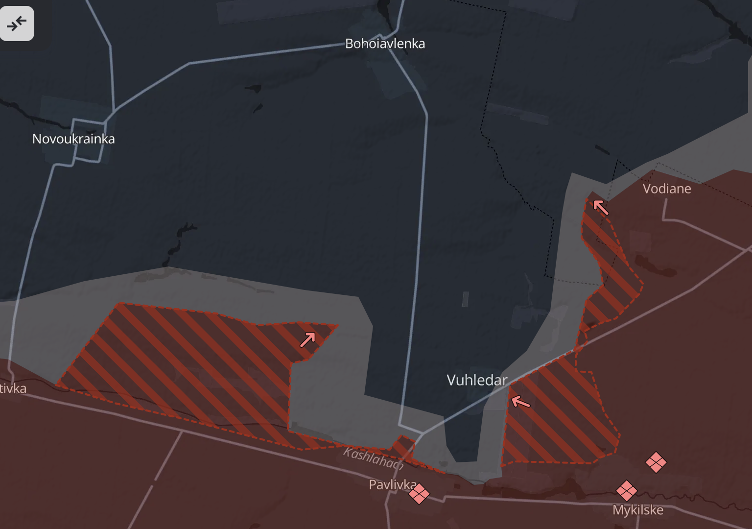 Ситуація почала змінюватися не на користь ЗСУ після того, як росіяни продавили оборону на північний схід від Вугледара - в районі Новомихайлівки і потім Костянтинівки. Пізніше впало Водяне, а на захід від Вугледару – Пречистівка. Все це відбувалося синхронно з відносно швидким поступом на Покровському напрямку і на південь від нього.