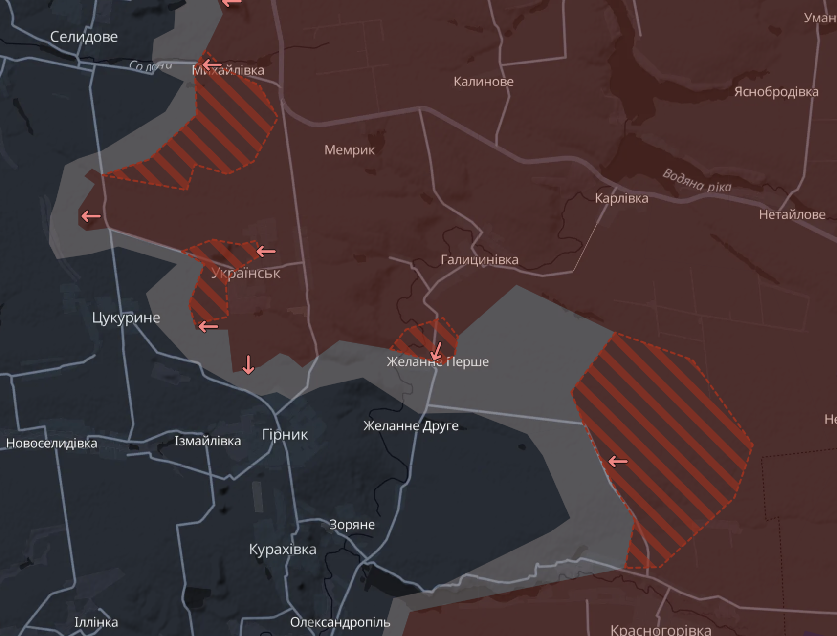 Також, суаючи по карті, російські війська з боку українців наблизилися до Цукуріно. І просунулися під Селидове, наблизившись до міста з півдня та сходу. Крім того, росіяни зайняли нові території на захід від Невельського.