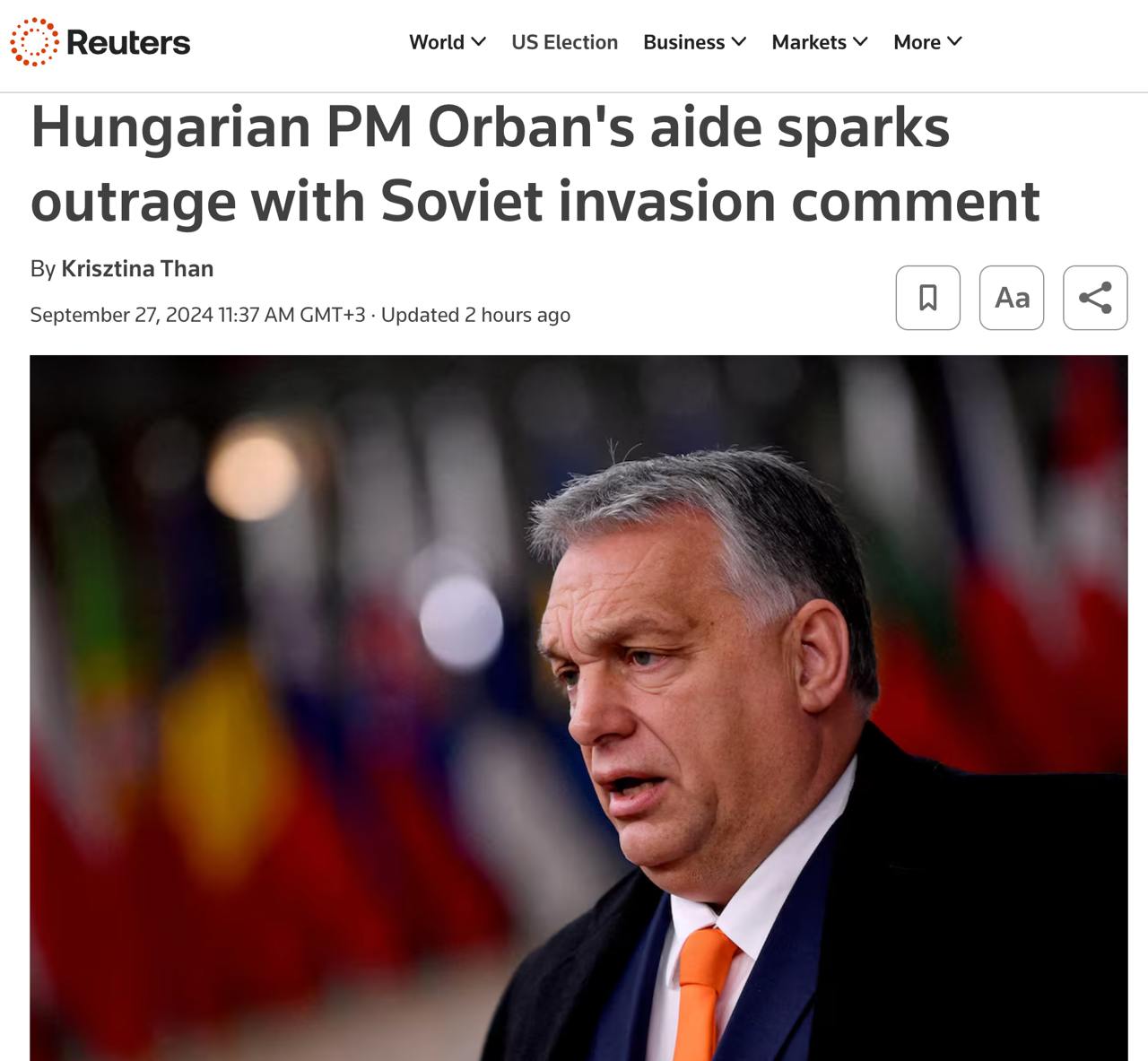 Як пише Bloomberg, ця заява помічника угорського прем'єра викликала "бурю обурення" серед противників чинного прем'єра.