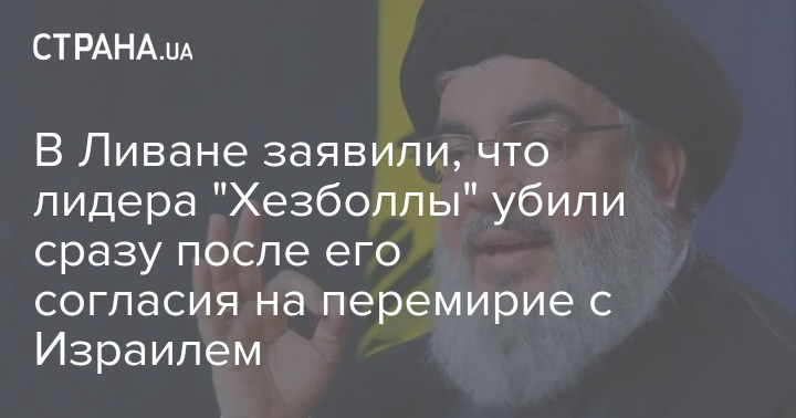 Влада Лівану стверджує, що лідера "Хезболли" Хасана Насраллу було вбито відразу після того, як той погодився на перемир'я з Ізраїлем, про що негайно було поінформовано США і Францію.