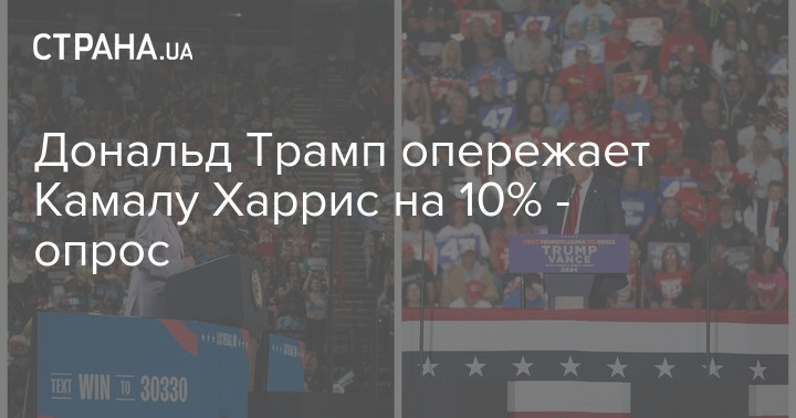 Кандидат у президенти США від Республіканської партії Дональд Трамп випереджає віце-президента Камалу Гарріс на 10%.