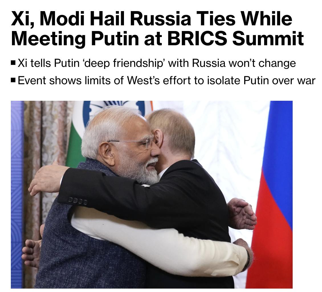 При цьому видання зазначає, що лідери Індії та Китаю "вітали зв'язки з Росією", а Сі Цзіньпін сказав Путіну, що "глибока дружба" з Росією не зміниться.