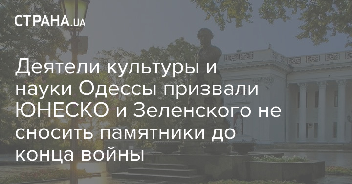 115 представників культури, мистецтва та науки Одеси підписали звернення до ЮНЕСКО та Володимира Зеленського із закликом відкласти вирішення питання про знесення міських пам'яток та перейменування вулиць до кінця війни.