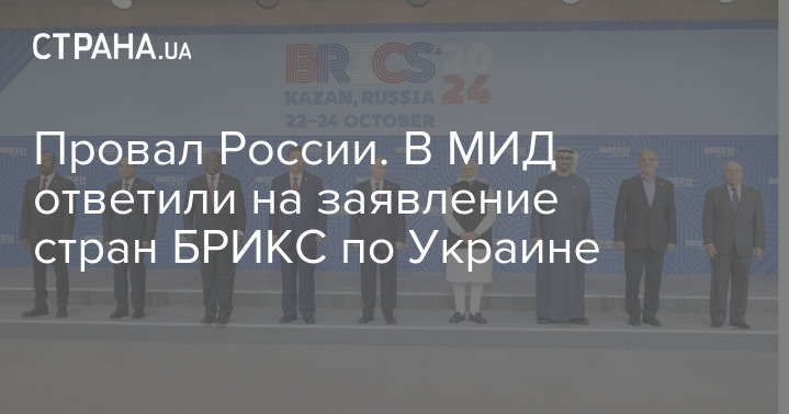 "Вважаємо, що цей текст фактично свідчить, що Росії не вдалося "експортувати" учасникам саміту БРІКС свої неоімперіалістичні погляди на зміну світового правопорядку та глобальної архітектури безпеки через агресію проти України. Спроби Москви нав'язати уявлення про нібито альтернативну позицію так званого "Глобального Півдня" зазнали чергове фіаско". Декларація продемонструвала, що БРІКС не має єдиної позиції щодо російської агресії проти України", - йдеться у заяві українського МЗС.