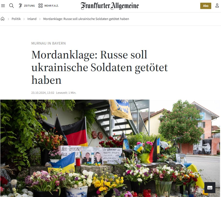 Передбачається, що росіянин убив двох чоловіків, яких у квітні прооперували після поранень на війні в травматологічній клініці міста Мурнау в Баварії.