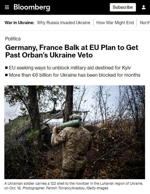 Німеччина та Франція проти плану Євросоюзу обійти вето Угорщини на виділення Україні 6 млрд євро - Bloomberg