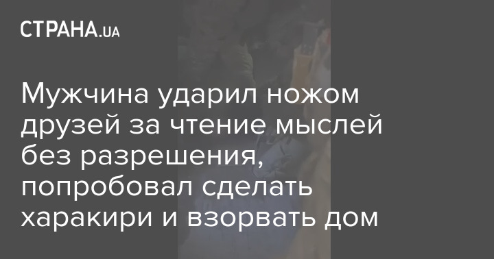 Чоловік ударив ножем друзів за читання думок без дозволу, спробував зробити харакірі та підірвати дім