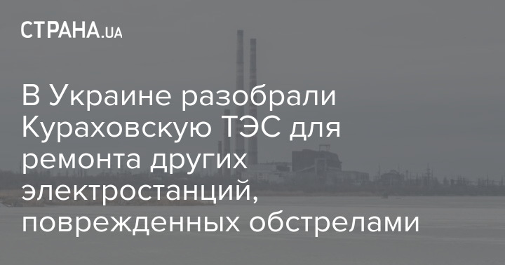 В Україні розібрали Курахівську ТЕС для ремонту інших електростанцій, пошкоджених обстрілами