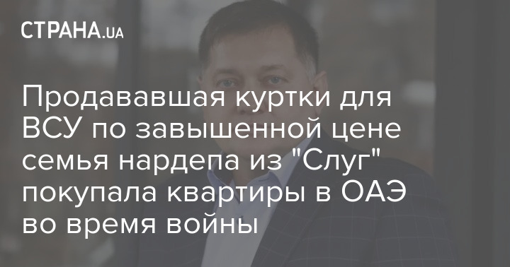 Сім'я нардепа з "Слуг", яка продавала куртки для ЗСУ за завищеною ціною, купувала квартири в ОАЕ під час війни