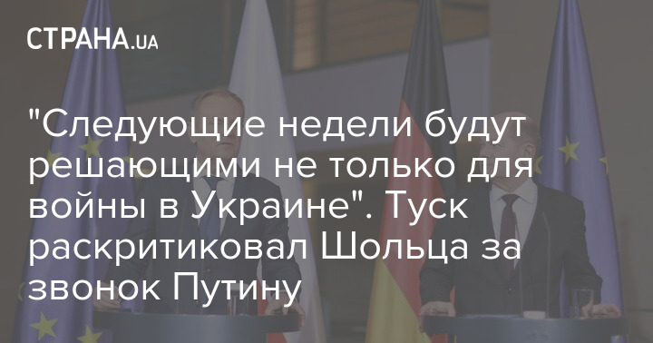 Таку заяву зробив прем'єр-міністр Польщі Дональд Туск, коментуючи дзвінок канцлера ФРН Олафа Шольца голові Кремля Володимиру Путіну.