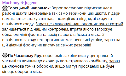 "Наразі це ключова точка оборони, якщо ми просядемо тут, це буде кінець оборони міста", – додає він.