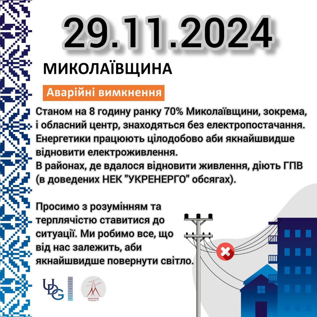 08:45 На Миколаївщині 70% споживачів досі без світла після вчорашнього ракетного удару.