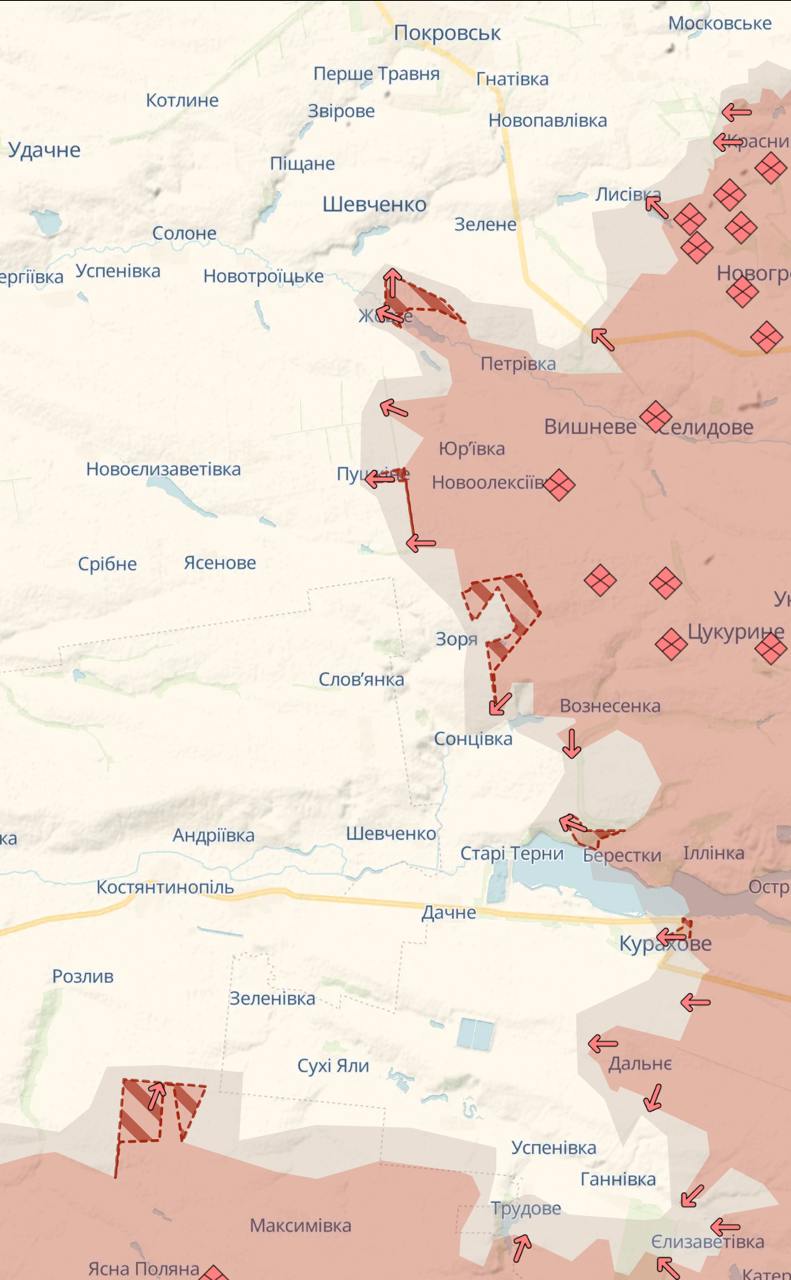 Також росіяни знову просунулися в районі Розливу до траси, що йде на Курахово із заходу. До Розливу їм залишилося менше 3 км, а до траси трохи більше ніж 8 км.