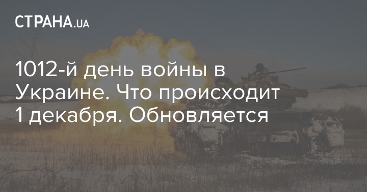 У неділю, 1 грудня, в Україні триває 1012-й день війни з Росією.