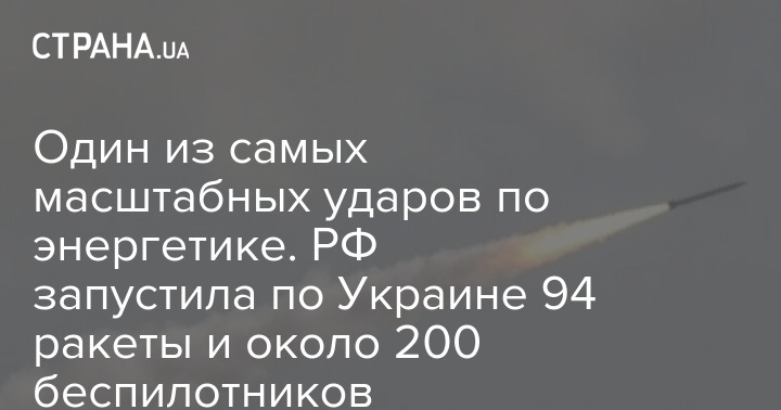Один із наймасштабніших ударів по енергетиці. РФ запустила по Україні 93 ракети та близько 200 безпілотників