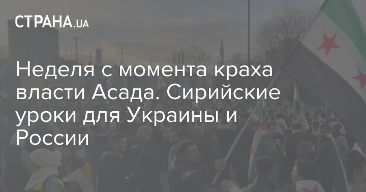 Сьогодні – рівно тиждень з моменту краху влади Асада у Сирії.