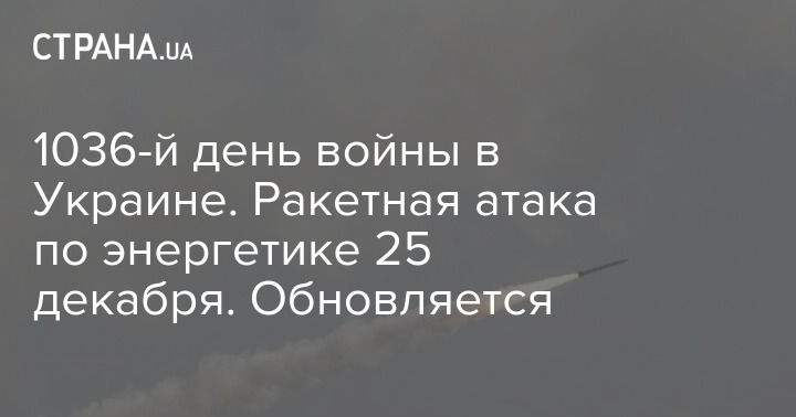 У середу, 25 грудня, в Україні триває 1036-й день війни з Росією. Близько 6:00 Росія розпочала масовану атаку на різні об'єкти по всій країні.