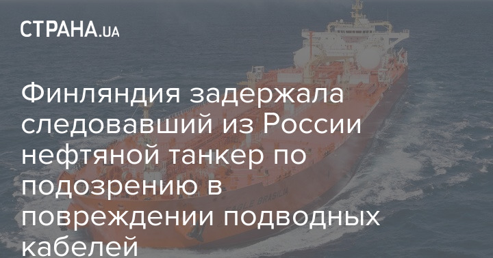 Фінляндія затримала нафтовий танкер Eagle S під прапором Островів Кука, який прямував з Росії, за підозрою в пошкодженні одразу чотирьох кабелів у Балтійському морі: одного - електроживлення та трьох - інтернет-ліній, що з'єднують Фінляндію та Естонію.