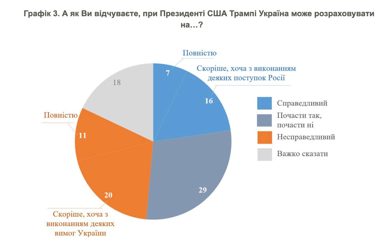 52% вважають, що цей світ у разі досягнення буде частково або цілком справедливим (29% – частково, 23% – цілком справедливим). І лише 31% вважає, що досягнутий Трампом світ буде несправедливим для України.