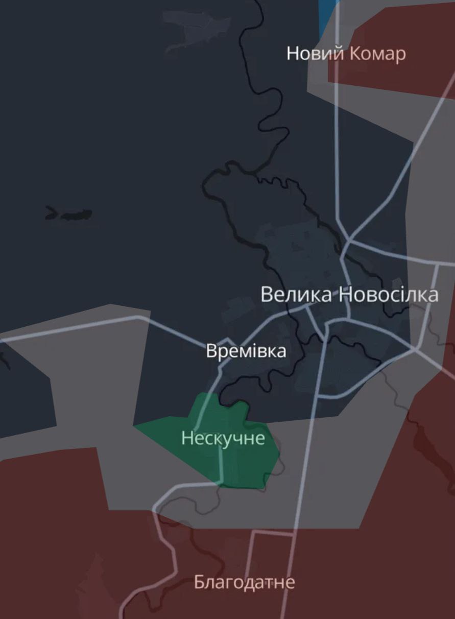 Російські паблики заявляють, що їхні війська перерізали трасу на Велику Новоселку з боку Гуляйполя і захопили ряд опорників на північ від дороги.