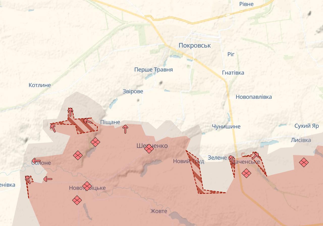 Під Покровськом у неї просування на південь та південний захід у напрямку Котлиного. А також на схід, у бік траси з Покровська на Костянтинівку.