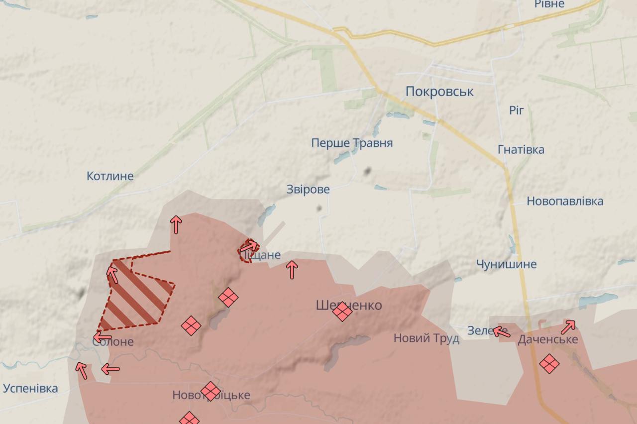 Під Покровськом у РФ просування на південний захід, у бік Вдалого, і на схід, у бік траси на Костянтинівку.