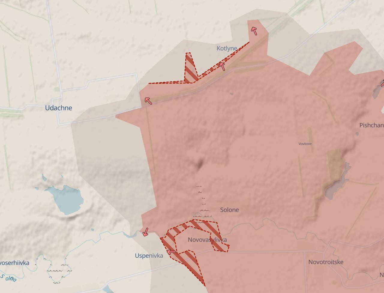 Війська РФ перерізали залізницю між Удалим та Котліним і наступають у бік Сергіївки, звідки до кордону Дніпропетровської області – близько 3 км. До населеного пункту вже долітають ФПВ-дрони.