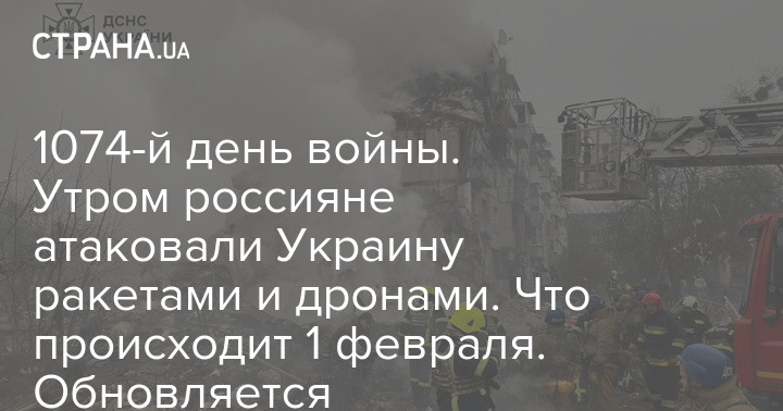 У суботу, 1 лютого, в Україні триває 1074-й день війни з Росією.