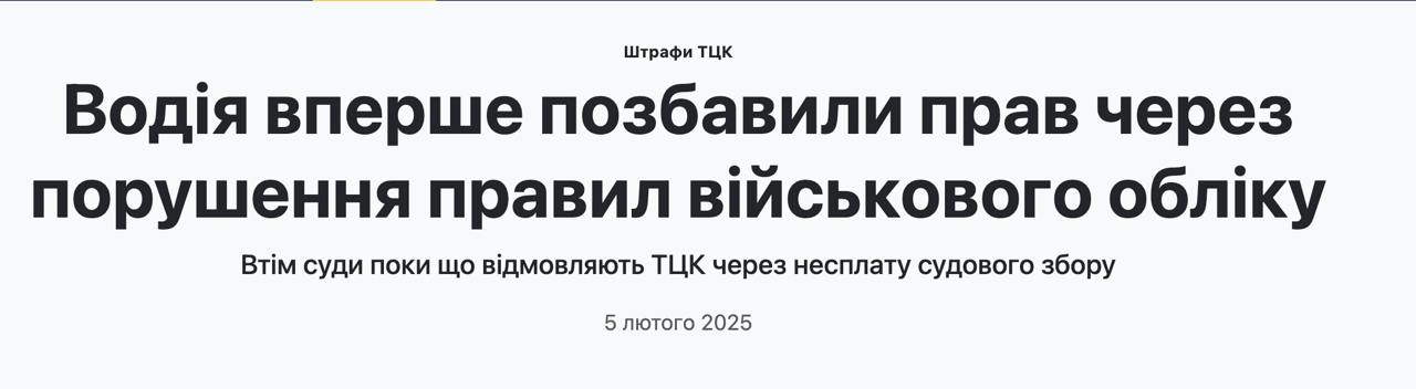 В Україні водія вперше позбавили прав через порушення правил військового обліку