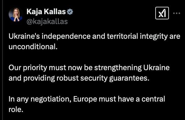 Глава європейської дипломатії Кая Каллас заявила, що "незалежність та територіальна цілісність України безумовні".