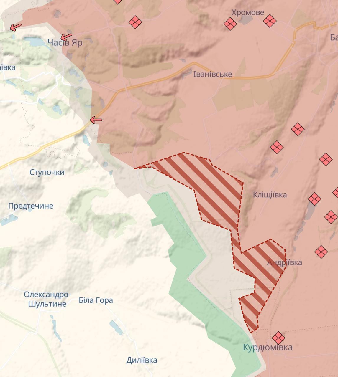 Також росіяни суттєво просунулися в районі Кліщеївки та Андріївки, де в них давно не було просування.