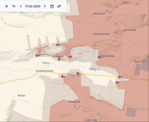 За минулий тиждень росіяни практично ліквідували "мішок" на південний захід та на захід від Курахового. Як випливає з карти Deep State, вони захопили всю територію в трикутнику Андріївка – Дачне – Улакли. Усі три села по суті також втрачені. Зараз іде штурм Константинополя на захід від Улаклів.