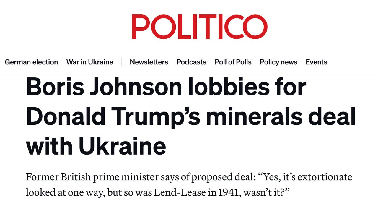 Учора ми наводили коментар Джонсона угоди між Україною та США про родовища, в якій він назвав запропонований Вашингтоном варіант договору аферою.