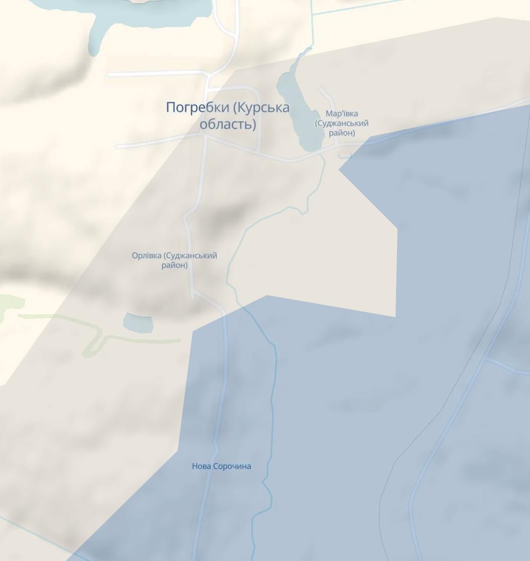 Міноборони РФ також заявляє про взяття під контроль населеного пункту Нова Сорочина в Курській області (північний край українського плацдарму). Україна цього не підтверджувала. На карті Deep State він поки що вказаний під контролем ЗСУ.