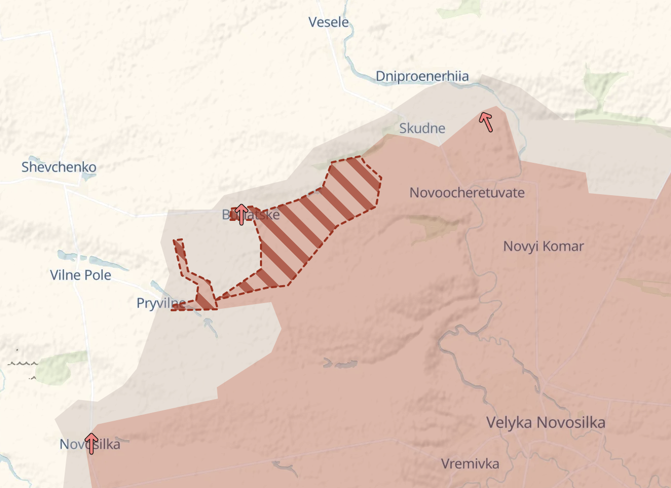 Також російські війська продовжують щодня просуватися на північний захід від Великої Новосілки. Вони ведуть бої у Бурлацькому та у Привільному.