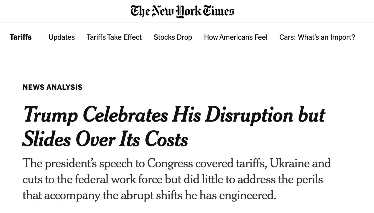 У статті видання йдеться, що глава Білого дому під час своєї промови перед Конгресом привітав ініціативу президента України Володимира Зеленського повернутися до переговорів про мир та мінеральну угоду.