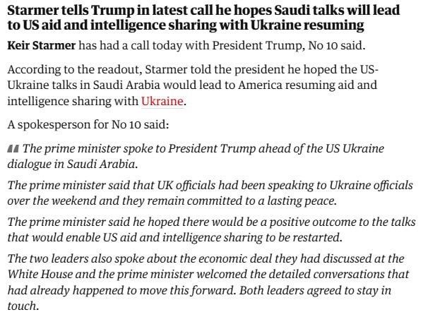 Прем'єр Британії Кір Стармер та президент США Дональд Трамп обговорили майбутні переговори США та України у Саудівській Аравії.