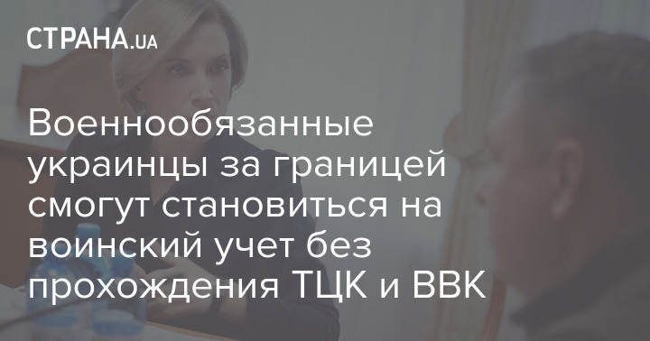 За її словами, Міністерство оборони в тижневий термін внесе проект постанови, згідно з якою громадяни віком від 18 до 60 років, які перебувають за кордоном, матимуть можливість стати на військовий облік без відвідування ТЦК і без проходження ВВК. Наразі це дозволено громадянам від 18 до 25 років.