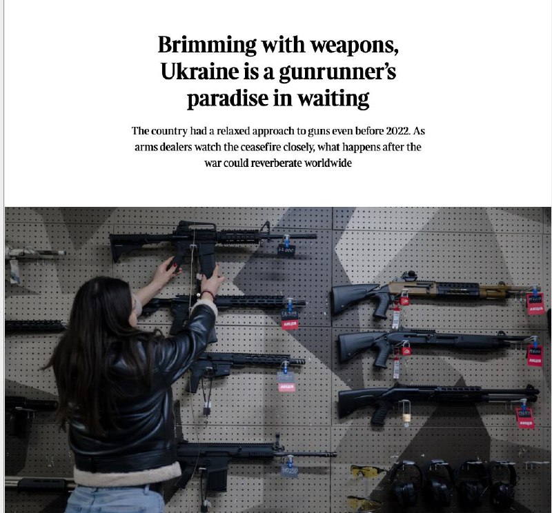 Зазначається, що лише у Києві в перші дні війни добровольцям видали понад 25 000 автоматів і близько 10 мільйонів набоїв, а також гранатомети та пускові установки. Тому повоєнна Україна "може перетворитися на суспільство Калашнікова", в якому суперечки, що колись вирішувалися кулаками, вирішуватимуться за допомогою зброї.
