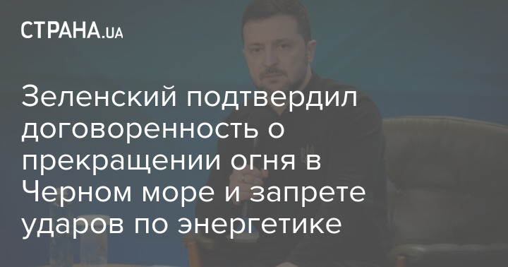 Зеленський підтвердив домовленість про припинення вогню у Чорному морі та заборону на удари по енергетиці