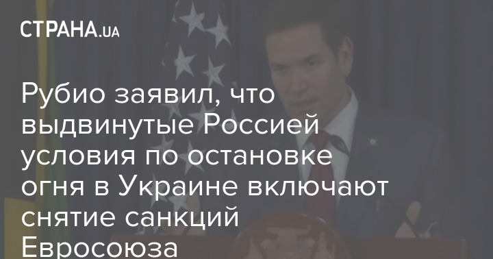 "По-друге - концепт припинення вогню у Чорному морі. Звичайно, після нашої зустрічі у своєму релізі росіяни уточнили деякі умови, виконання яких хочуть для досягнення цього [припинення вогню]. Ми оцінимо це, деякі з цих умов включають санкції, які не є нашими, - це санкції ЄС", - сказав Рубіо.