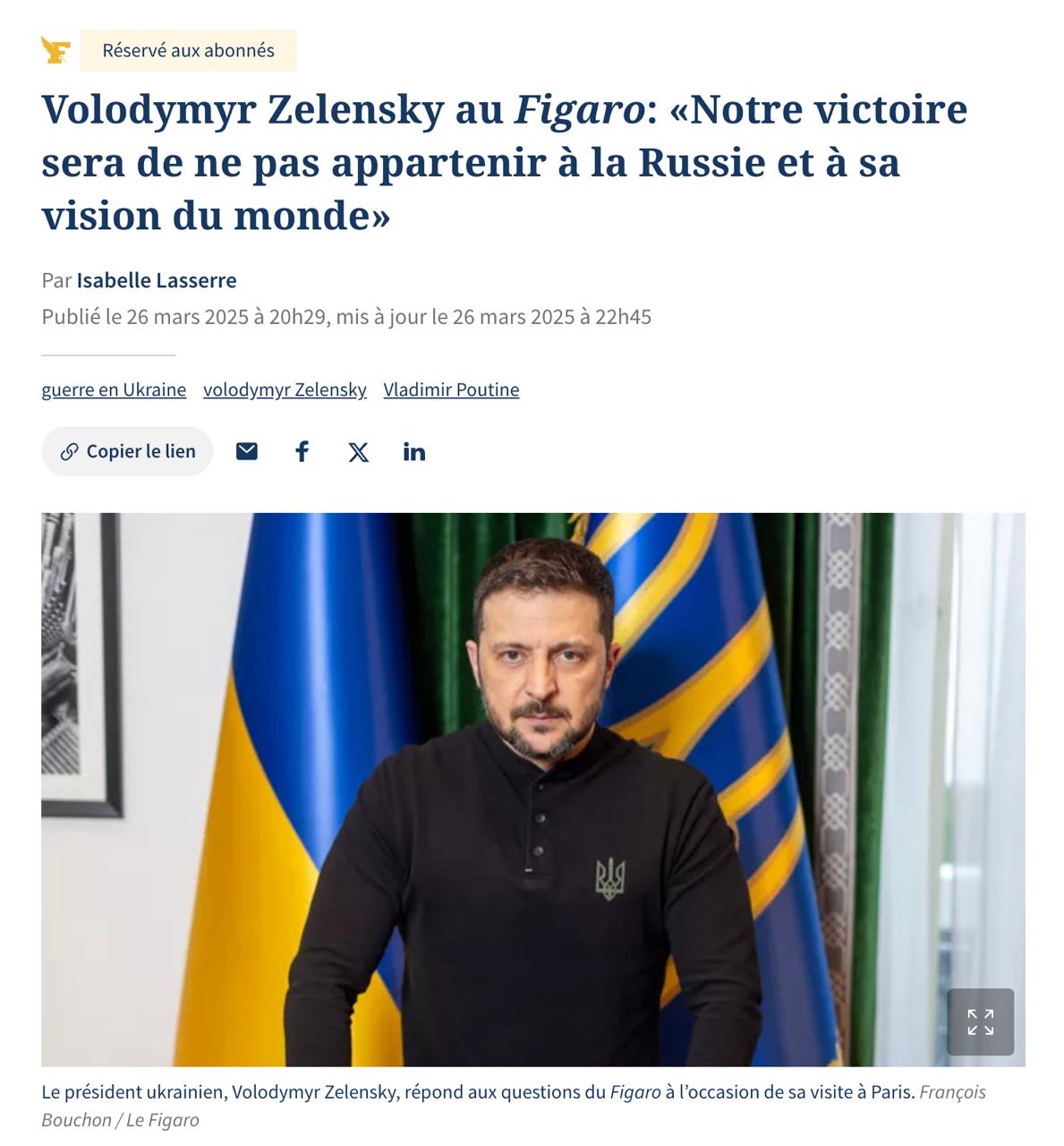 На цьому наголосив президент України Володимир Зеленський в інтерв'ю виданню Le Figaro.