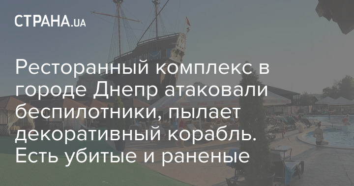 У Мережі з'явилося відео корабля, що горів, який був встановлений як декорація на території готельно-ресторанного комплексу "Бартоломео", по якому вдарив "Шахед".