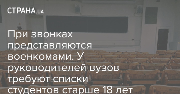 Низка керівників українських вищих навчальних закладів цього тижня отримали дзвінки від людей, які представилися співробітниками ТЦК та вимагали надати списки студентів чоловічої статі віком від 18 років.