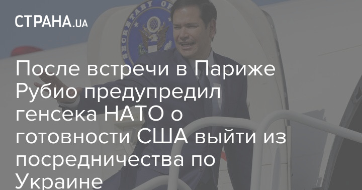 Державний секретар США Марко Рубіо в телефонній розмові з генеральним секретарем НАТО Марком Рютте підтвердив, що якщо найближчим часом не з'явиться чіткий шлях до миру, США відійдуть від своїх посередницьких зусиль щодо встановлення миру.